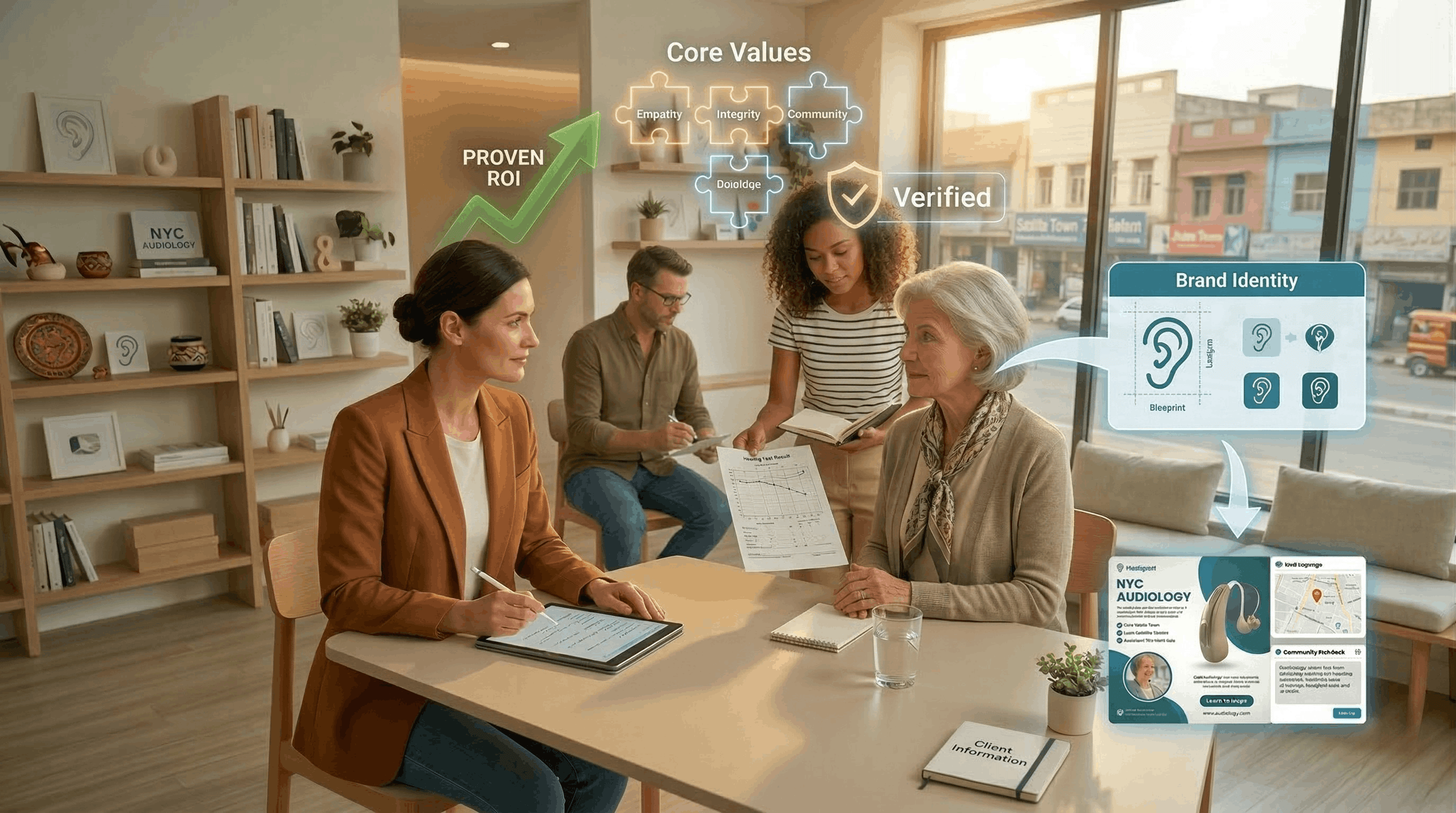 Our team sits down with you to understand what makes your practice different. We listen to your story, your values, and what matters most to your patients. This foundation shapes every graphic we create.